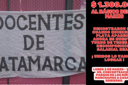 Bajo la consigna “¡Docentes de Catamarca, el momento es ahora!”, un sector de la docencia provincial lanzó una convocatoria a movilizarse el próximo lunes 2 de marzo a las 10…