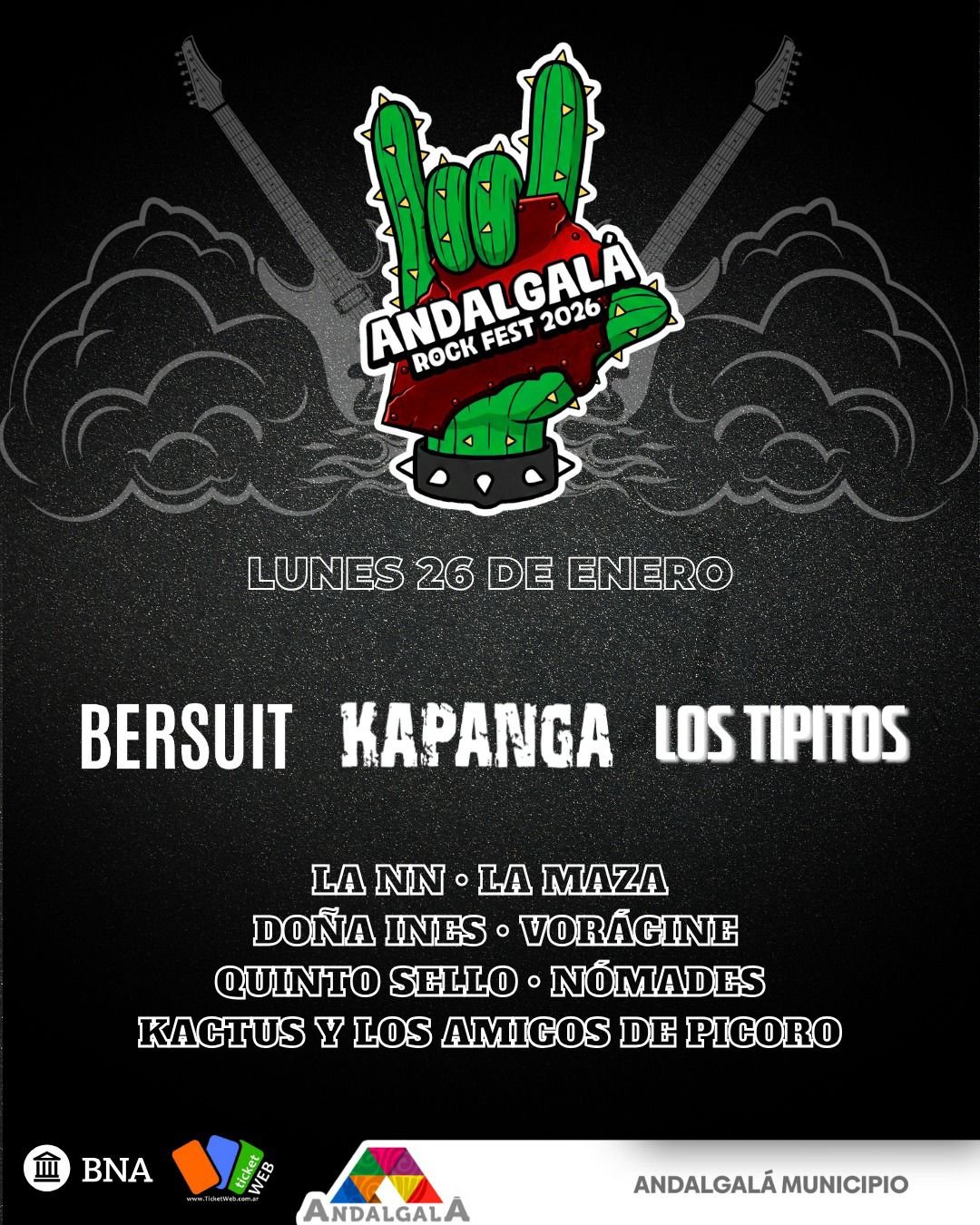 El Andalgalá Rock Fest 2026 también será una vidriera para el talento local y de bandas de departamentos vecinos, con la participación de La NN, La Maza, Doña Inés, Vorágine, Quinto Sello, Nómades y Kactus y los Amigos de Picoro, reafirmando el compromiso del Municipio con el desarrollo de los artistas de la región y la construcción de una escena cultural propia.