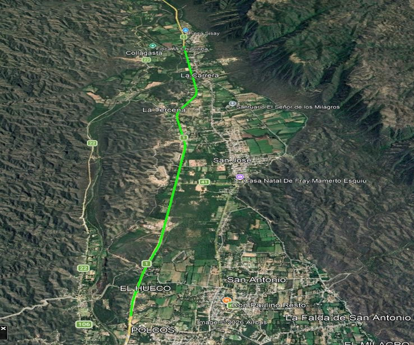 El recorrido de la prueba, se extenderá en sentido Norte hasta el acceso a la localidad de Collagasta, Dpto. Fray Mamerto Esquiú.