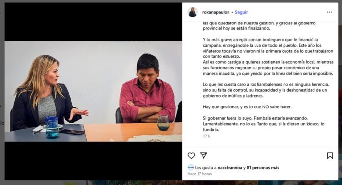 Reading: Dura crítica de Roxana Paulón al intendente de Fiambalá: “Un inútil de la excusa fácil”