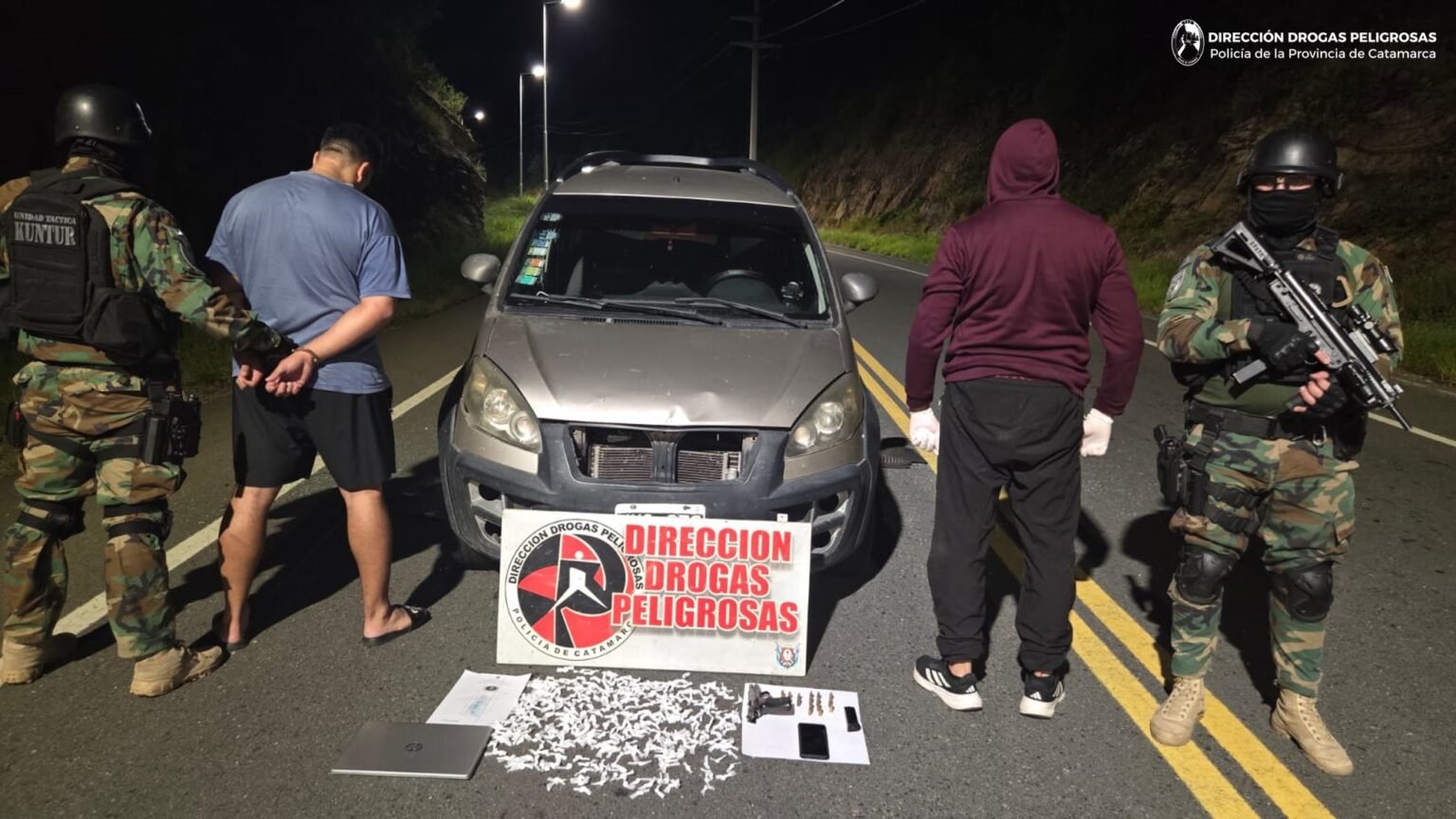 En la noche de ayer, a las 21:40, efectivos de la Dirección Drogas Peligrosas de la Policía de la Provincia, luego de llevar a cabo tareas de su especialidad, se constituyeron en la Quebrada de Moreira, inmediaciones a Banda de Varela, donde cumplimentaron una orden de registro y requisa personal, dispuesta por el Juzgado Federal de Catamarca.