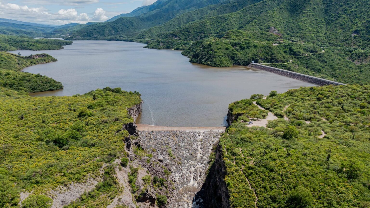 Aguas de Catamarca informa que el dique Las Pirquitas alcanzó su cota máxima y comenzó a verter agua a través de su vertedero, como consecuencia del importante aporte hídrico generado por las últimas precipitaciones en la cuenca.