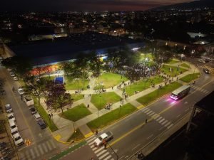 Entre las mejoras del espacio verde, se ejecutaron nuevas camineras, paseos internos y áreas recreativas con juegos infantiles de gran diversidad, además de una zona de gimnasios al aire libre y una cancha de fútbol-tenis. Para completar la obra, se renovó la iluminación con tecnología LED, lo que asegura una mayor visibilidad y seguridad. Adicionalmente, se puso en valor el puente sobre Av. Acosta Villafañe con nueva pintura e iluminación, y se recuperó la rotonda con un diseño radial y vegetación autóctona. Todo ellos sumado a un nuevo semáforo que brindará una organización del tráfico y contribuirá significativamente a la seguridad vial de los vecinos.