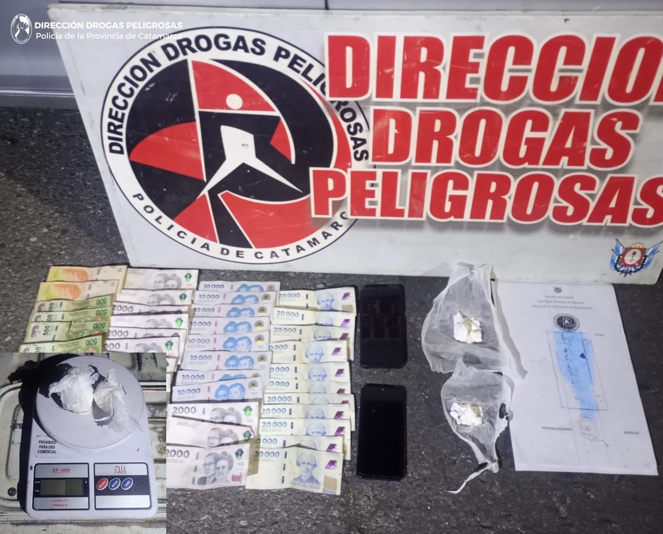 El primer hecho tuvo lugar en avenida Gobernador Rodríguez, entre calles 25 de Mayo y Avellaneda y Tula, donde el personal policial identificó a dos hombres de 30 y 31 años que circulaban a bordo de un automóvil Volkswagen Fox gris. Durante el control, los uniformados procedieron al secuestro de dos teléfonos celulares —de marcas LG y Samsung—, la suma de 345 mil pesos en efectivo y dos envoltorios plásticos que contenían una sustancia pulverulenta.